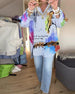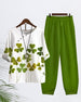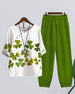 SPESIFIKASJONER Stil: Uformelt Topp type: Bluser Materiale: Bomullsblandinger Mønstertype: Trykt Halslinje: Rund hals Ermetype: Vanlig erme Erme lengde: Halv erme Bukse type: Konvensjonell Bukselengde: Lang Midje type: Midt i midjen Passform type: Vanlig Årstid: Vår, Sommer, Høst Detaljer: Lappeverk, Knapper Anledning: Daglig Pakken inkludere...