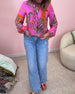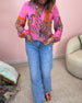 Fargerik skjorte med stativ krage med geometrisk trykk