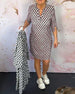 SPESIFIKASJONER Stil: Uformelt Materiale: Bomullsblandinger Kjole type: Rett Kjole Kjolens lengde: Knelengde Halslinje: V-hals Mønstertype: Leopard Ermetype: Vanlig erme Erme lengde: 3/4 erme Passform type: Løs Årstid: Vår, Sommer Anledning: Daglig Pakken inkluderer: 1 x Kjole STØRRELSESTABELL (cm) Størrelse Bryst Lengde S 95 100 M 100 1...