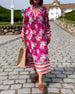 SPESIFIKASJONER Stil: Uformelt, Ferie Materiale: Bomullsblandinger Kjole type: A-line Kjolens lengde: Maxi Halslinje: V-hals Mønstertype: Trykt Ermetype: Utvidet erme Erme lengde: 3/4 erme Detaljer: Rynket Passform type: Løs Årstid: Vår, Sommer Anledning: Daglig, Ferie Pakken inkluderer: 1 x Kjole STØRRELSESTABELL (cm) Størrelse Bryst Le...