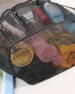 EGENSKAPER Romslig interiør : Nettingveske med stor kapasitet har et generøst stort hovedrom i midten, perfekt for oppbevaring av klumpete toalettsaker, klær, håndklær og mer. Det gir god plass til å holde orden på det du trenger og lett tilgjengelig. Praktiske sidelommer : Langs sidene av vesken finner du ekstra lommer designet for å holde ...