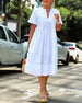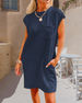SPESIFIKASJONER Stil: Uformelt Materiale: Bomullsblandinger Kjole type: Rett Kjole Kjolens lengde: Over kneet Halslinje: Rund hals Mønstertype: Ensfarget Ermetype: Vanlig erme Erme lengde: Kort erme Detaljer: Lomme Passform type: Vanlig Årstid: Sommer Anledning: Daglig Pakken inkluderer: 1 x Kjole STØRRELSESTABELL (cm) Størrelse Bryst Lengd...