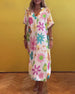 Trykket V-hals button-down maxikjole