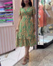 SPESIFIKASJONER Stil: Uformelt Materiale: Bomullsblandinger Kjole type: A-line Kjolens lengde: Midi Halslinje: V-hals Mønstertype: Trykt Ermetype: Vanlig erme Erme lengde: Kort erme Detaljer: Rynket Passform type: Vanlig Årstid: Sommer Anledning: Daglig Pakken inkluderer: 1 x Kjole STØRRELSESTABELL (cm) Størrelse Bryst Lengde S 95 110 M ...