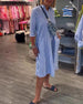 SPESIFIKASJONER Stil: Uformelt Materiale: Bomullsblandinger Kjole type: Rett Kjole Kjolens lengde: Knelengde Halslinje: Slag Mønstertype: Stripete Ermetype: Vanlig erme Erme lengde: Halv erme Detaljer: Knapper, Kryssstropper, Knute Passform type: Vanlig Årstid: Sommer Anledning: Daglig Pakken inkluderer: 1 x Kjole STØRRELSESTABELL (cm) Størr...
