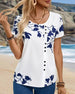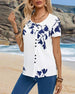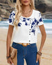 Bluse Skrå Krage Kort Erme Trykt Uformell