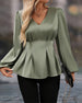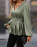 Bluse V-hals Puffermet Midje