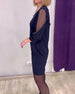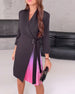 Uformell ensfarget kjole med jakkeslagslomme og patchwork
