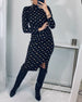 SPESIFIKASJONER Stil: Uformelt Materiale: Bomullsblandinger Kjole type: Rett Kjole Kjolens lengde: Knelengde Mønstertype: Prikk Ermetype: Vanlig erme Erme lengde: 3/4 erme Passform type: Skinny Årstid: Vår, Høst Anledning: Daglig Pakken inkluderer: 1 x Kjole STØRRELSESTABELL (cm) Størrelse Bryst Lengde S 95 100 M 100 101.5 L 105 ...
