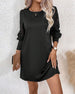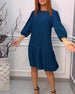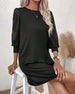 SPESIFIKASJONER Stil: Elegant Materiale: Bomullsblandinger Kjole type: Rett Kjole Kjolens lengde: Knelengde Halslinje: Rund hals Mønstertype: Ensfarget Ermetype: Pufferme Erme lengde: Ni poengs erme Detaljer: Lappeverk, Rynket Passform type: Vanlig Årstid: Vår, Høst, Vinter Anledning: Daglig Pakken inkluderer: 1 x Kjole STØRRELSESTABELL (c...