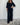 Ensfarget midjekjole med V-hals og sommerfuglerm