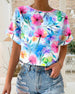 Bluse V-Hals Blonder Lanterne Ermer Trykket
