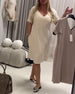 SPESIFIKASJONER Stil: Uformelt Materiale: Bomullsblandinger Kjole type: Tank Kjolens lengde: Knelengde Halslinje: U-hals Erme lengde: Ermeløs Detaljer: Ryggløs Passform type: Vanlig Årstid: Vår,Sommer Anledning: Daglig Pakken inkluderer: 1 x Kjole STØRRELSESTABELL (cm) Størrelse Bryst Lengde S 97 105 M 101 106 L 105 107 XL 111 10...