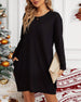 SPESIFIKASJONER Stil: Uformelt Materiale: Bomullsblandinger Kjole type: Rett Kjole Kjolens lengde: Over kneet Halslinje: Rund hals Mønstertype: Ensfarget Ermetype: Vanlig erme Erme lengde: Langermet Detaljer: Lomme Passform type: Løs Årstid: Høst, Vinter Anledning: Daglig, Arbeid Pakken inkluderer: 1 x Kjole STØRRELSESTABELL (cm) Større...