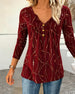 Trykt Casual Topp Med V-Hals Og Lange Ermer