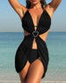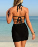 SPESIFIKASJONER Stil: Ferie,Elegant Materiale: 15% Spandex,85% Polyester Anledning: Ferie Halslinje: Halter Mønstertype: Ensfarget Erme lengde: Ermeløs Topp type: Bikini BH type: Push up Truse type: Naturlig Passform type: Vanlig Årstid: Vår,Sommer,Høst Detaljer: Snøre opp,Rynket,Varm boring Pakken inkluderer: 1 x Bikini,1 x Strandklær,1 x Tru...