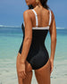 SPESIFIKASJONER Stil: Sexy Materiale: 82% Chinlon,18% Spandex Anledning: Ferie Halslinje: Firkantet hals Mønstertype: Fargeblokk Ermetype: Vanlig erme Erme lengde: Ermeløs Topp type: Ett stykke BH type: Bøyle-fri BH Passform type: Skinny Pakken inkluderer: 1 x Badedrakt i ett stykke STØRRELSESTABELL (cm) Størrelse Bryst Midje Hofte S 8...