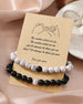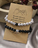 FUNKSJONER Elegant design: Armbåndsettet har en harmonisk kombinasjon av hvite steinperler og matte svarte steinperler, og skaper en slående kontrast som er både moderne og tidløs. Naturlige elementer: De hvite steinperlene er laget av naturstein og tilbyr en unik tekstur og subtil marmorering, mens de matte svarte steinene gir en elegant, disk...