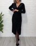 SPESIFIKASJONER Stil: Fest Materiale: Bomullsblandinger Kjole type: Bodycon Kjolens lengde: Knelengde Halslinje: V-hals Mønstertype: Paljett Ermetype: Vanlig erme Erme lengde: Langermet Detaljer: Spalte Passform type: Skinny Årstid: Høst,Vinter Anledning: Parti Pakken inkluderer: 1 x Kjole STØRRELSESTABELL (cm) Størrelse Bryst Lengde S 95 ...
