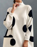 SPESIFIKASJONER Stil: Elegant Materiale: Bomullsblandinger Kjole type: Rett Kjole Kjolens lengde: Knelengde Halslinje: Høy hals Mønstertype: Prikk Ermetype: Vanlig erme Erme lengde: Langermet Detaljer: Lomme Passform type: Vanlig Årstid: Høst,Vinter Anledning: Daglig Pakken inkluderer: 1 x Kjole STØRRELSESTABELL (cm) Størrelse Bryst Lengde ...