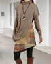 SPESIFIKASJONER Stil: Uformelt, Elegant Materiale: Bomullsblandinger Kjole type: Asymmetrisk Kjolens lengde: Knelengde Halslinje: Kappehals Mønstertype: Fargeblokk, Trykt Ermetype: Vanlig erme Erme lengde: Langermet Detaljer: Rynket Passform type: Vanlig Årstid: Høst, Vinter Anledning: Daglig Pakken inkluderer: 1 x Kjole STØRRELSESTABELL (...