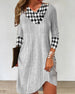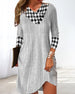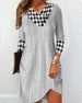 SPESIFIKASJONER Stil: Uformelt Materiale: Bomullsblandinger Kjole type: Rett Kjole Kjolens lengde: Knelengde Halslinje: V-hals Mønstertype: Plaid, Fargeblokk Ermetype: Vanlig erme Erme lengde: Langermet Passform type: Vanlig Årstid: Vår, Høst, Vinter Anledning: Daglig Pakken inkluderer: 1 x Kjole STØRRELSESTABELL (cm) Størrelse Bryst Le...