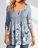 SPESIFIKASJONER Topp type: Topper Stil: Uformelt Materiale: Bomullsblandinger Anledning: Daglig Halslinje: V-hals Mønstertype: Blader Ermetype: Vanlig erme Erme lengde: 3/4 erme Passform type: Vanlig Årstid: Vår, Sommer, Høst Detaljer: Knapper Pakken inkluderer: 1 x Topp STØRRELSESTABELL (cm) Størrelse Bryst Lengde S 95 67 M 10...