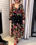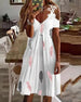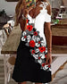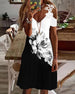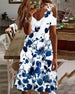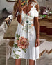 Elegant kjole med V-hals med blomstertrykk