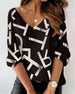 SPESIFIKASJONER Topp type: Topper Stil: Uformelt Materiale: Bomullsblandinger, Polyester Anledning: Daglig Halslinje: V-hals Mønstertype: Prikk, Trykt Ermetype: Vanlig erme Erme lengde: 3/4 erme Passform type: Vanlig Årstid: Vår, Sommer, Høst Detaljer: Rufsete Pakken inkluderer: 1 x Topp STØRRELSESTABELL (cm) Størrelse Bryst(cm)...