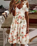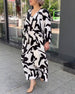 SPESIFIKASJONER Stil: Ferie, Elegant Materiale: Polyester Kjole type: A-line Kjolens lengde: Midi Halslinje: V-hals Mønstertype: Blomstret Ermetype: Vanlig erme Erme lengde: Langermet Detaljer: Snøre opp Passform type: Løs Årstid: Vår, Sommer, Høst Anledning: Daglig, Ferie Pakken inkluderer: 1 x Kjole STØRRELSESTABELL (cm) Størrel...