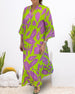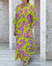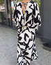 Elegant langermet kjole i motetrykk