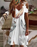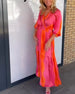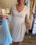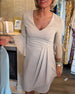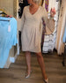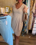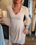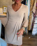 V-hals plissert kjole med klokkeermer