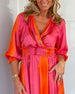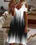 V-hals kjole med fargeblokktrykk