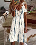 SPESIFIKASJONER Stil: Uformelt Materiale: Bomullsblandinger Kjole type: Rett Kjole Kjolens lengde: Knelengde Halslinje: V-hals Mønstertype: Fargeblokk, Trykt Ermetype: Vanlig erme Erme lengde: Kort erme Passform type: Vanlig Årstid: Vår, Sommer, Høst Anledning: Daglig Pakken inkluderer: 1 x Kjole STØRRELSESTABELL (cm) Størrelse Bry...