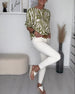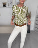Bluse med rund hals med sebratrykk