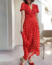 SPESIFIKASJONER Stil: Elegant Materiale: Bomullsblandinger Kjole type: A-line Kjolens lengde: Maxi Halslinje: V-hals Mønstertype: Prikk Ermetype: Vanlig erme Erme lengde: Kort erme Detaljer: Spalte Passform type: Vanlig Årstid: Vår, Sommer, Høst Anledning: Daglig Pakken inkluderer: 1 x Kjole STØRRELSESTABELL (cm) Størrelse Bryst(c...