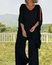 SPESIFIKASJONER Topp type: Topper Stil: Uformelt Materiale: Bomullsblandinger Anledning: Daglig Halslinje: V-hals Mønstertype: Ensfarget Ermetype: Spalte ermer Erme lengde: Halv erme Bukselengde: Lang Passform type: Løs Årstid: Sommer Detaljer: Lomme, Snøre opp Pakken inkluderer: 1 x Topp, 1 x Bukser STØRRELSESTABELL (cm) Størrel...