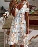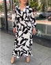 SPESIFIKASJONER Stil: Uformelt Materiale: Bomullsblandinger Kjole type: shift-dress kjole Kjolens lengde: Maxi Halslinje: V-hals Mønstertype: Blader, Trykt Ermetype: Volanger erme Erme lengde: 3/4 erme Passform type: Løs Årstid: Vår, Sommer, Høst Anledning: Daglig, Ferie Pakken inkluderer: 1 x Kjole STØRRELSESTABELL (cm) Størrelse ...