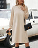 SPESIFIKASJONER Stil: Forretning Materiale: Bomullsblandinger Kjole type: A-line Kjolens lengde: Knelengde Halslinje: Høy hals Mønstertype: Ensfarget Ermetype: Vanlig erme Erme lengde: Langermet Passform type: Vanlig Årstid: Vår, Høst Anledning: Daglig, Arbeid Pakken inkluderer: 1 x Kjole STØRRELSESTABELL (cm) Størrelse Bryst Lengde S...
