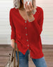 Enkel Strikket Topp Med Knappelukking Og V-utringning For Kvinner