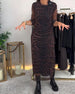 SPESIFIKASJONER Stil: Uformelt Materiale: Bomullsblandinger Kjole type: Rett Kjole Kjolens lengde: Maxi Halslinje: Rund hals Mønstertype: Leopard Ermetype: Vanlig erme Erme lengde: 3/4 erme Passform type: Vanlig Årstid: Vår,Høst Anledning: Daglig Pakken inkluderer: 1 x Kjole STØRRELSESTABELL (cm) Størrelse Bryst Lengde S 97 130 M 101 133...