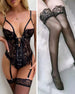 Sexig Gjennomsiktig Slim Fit Fristelse Strømpeholder Nattsettsett