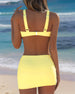 SPESIFIKASJONER Stil: Ferie Materiale: 15% Spandex,85% Polyester Mønstertype: Trykt Erme lengde: Ermeløs Topp type: Bikini BH type: Bøyle-fri BH Truse type: Skjørt Passform type: Skinny Detaljer: Ryggløs,Snøre opp,Bue-knute Pakken inkluderer: 1 x Bikini STØRRELSESTABELL (cm) Størrelse Bryst Midje Hofte Under byste S 88 73 96 73 M 92 77 1...