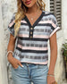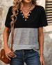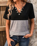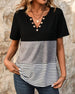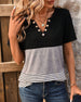 SPESIFIKASJONER Topp type: T skjorte Stil: Uformelt Materiale: Bomullsblandinger Anledning: Daglig Halslinje: V-hals Mønstertype: Stripete,Fargeblokk Ermetype: Vanlig erme Erme lengde: Kort erme Passform type: Vanlig Årstid: Vår,Sommer Detaljer: Knapper Pakken inkluderer: 1 x T-skjorte STØRRELSESTABELL (cm) Størrelse Bryst Lengde S 97 65 ...