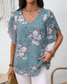 T-Skjorte Blomsterprint V-Hals Kortermet