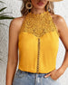 SPESIFIKASJONER Topp type: Tank Topp Stil: Uformelt Materiale: Polyester Anledning: Daglig Halslinje: Halter Mønstertype: Ensfarget Erme lengde: Ermeløs Passform type: Vanlig Årstid: Vår,Sommer Detaljer: Uthult,Blonder Pakken inkluderer: 1 x Tank-topp STØRRELSESTABELL (cm) Størrelse Bryst Lengde S 94 58 M 99 59 L 104 60 XL 112 61...