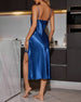 SPESIFIKASJONER Stil: Sexy Materiale: 100% Polyester Kjole type: Cami Kjolens lengde: Midi Halslinje: Spaghetti stropper Mønstertype: Ensfarget Erme lengde: Ermeløs Detaljer: Lappeverk,Høy åpning Passform type: Vanlig Årstid: Høst,Vinter Anledning: Daglig Pakken inkluderer: 1 x Kjole STØRRELSESTABELL (cm) Størrelse Bryst Rygglengde S ...