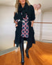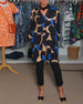 Uformell kjole med fargeblokktrykk med jakkeslag og snøring