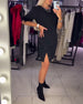 SPESIFIKASJONER Stil: Uformelt Materiale: Bomullsblandinger Kjole type: Rett Kjole Kjolens lengde: Knelengde Halslinje: V-hals Mønstertype: Ensfarget Ermetype: Vanlig erme Erme lengde: 3/4 erme Detaljer: Spalte Passform type: Vanlig Årstid: Høst,Vinter Anledning: Daglig Pakken inkluderer: 1 x Kjole STØRRELSESTABELL (cm) Størrelse Bryst Lengd...