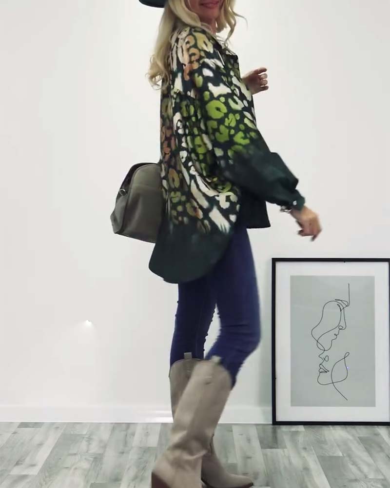 Bluse Med Retro Knapp Detaljer Og Små Florale Trykk